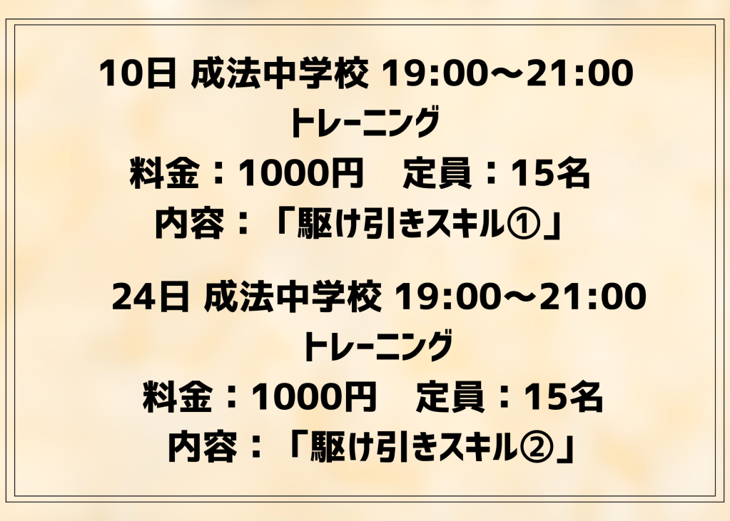 初めて内容を連結していますが、どちらかだけに参加でも支障ありません。普通にチーム練習をしていると中々教わらないような細かいけど大事な部分をやろうと思ってます。
