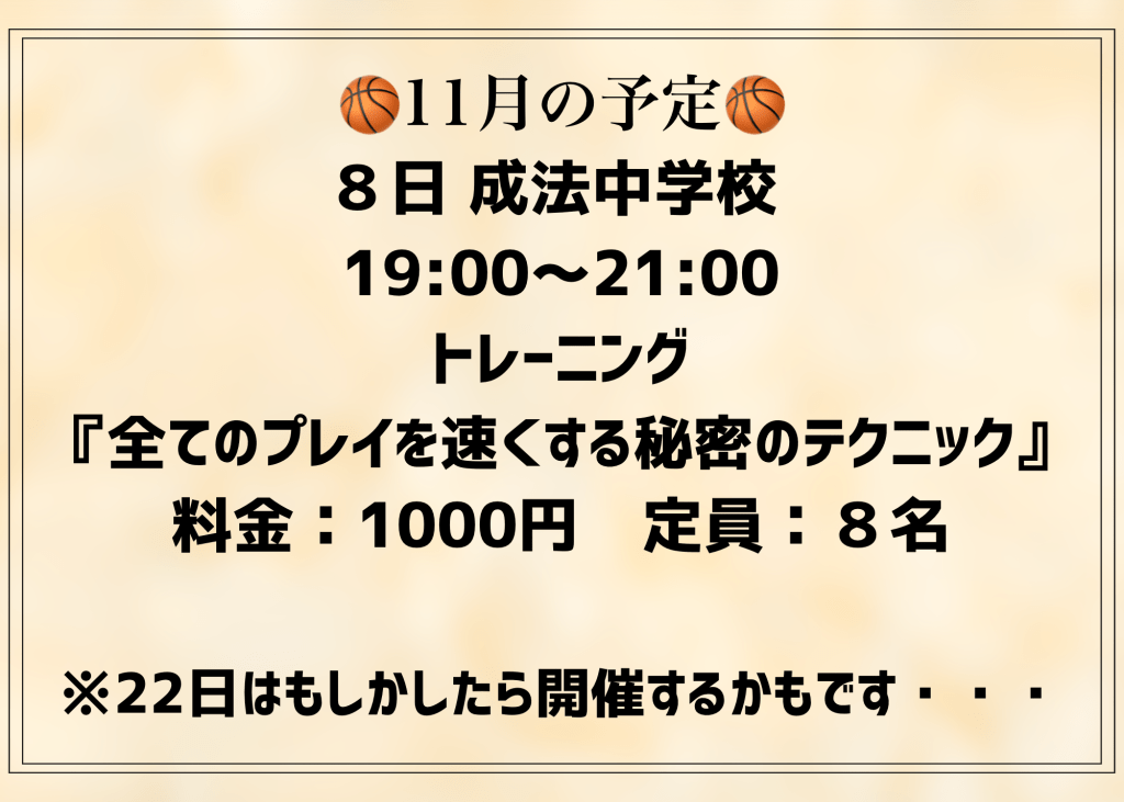 さて11月ですが、残念なお知らせがあります。おそらく今月は1回だけの開催になってしまいます💦