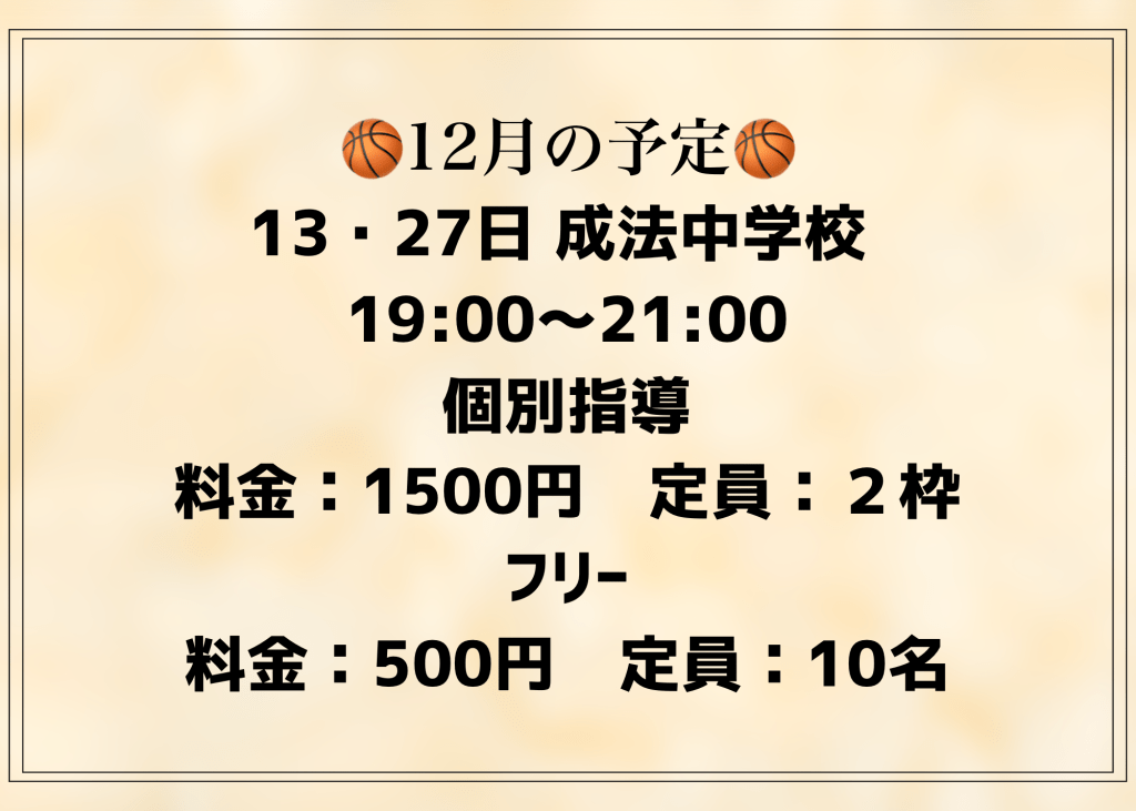 少しややこしいですが、2枠というのは個別指導の枠で、枠内で友達や兄弟などの複数参加はOKです🏀