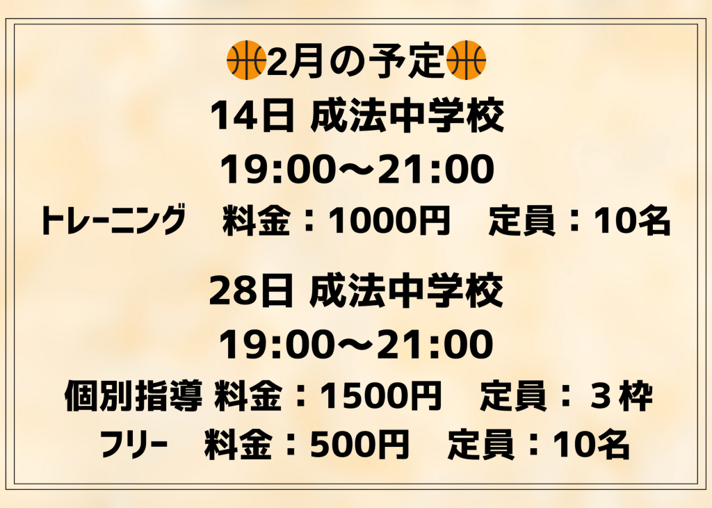 お待たせしました、2月の予定です!